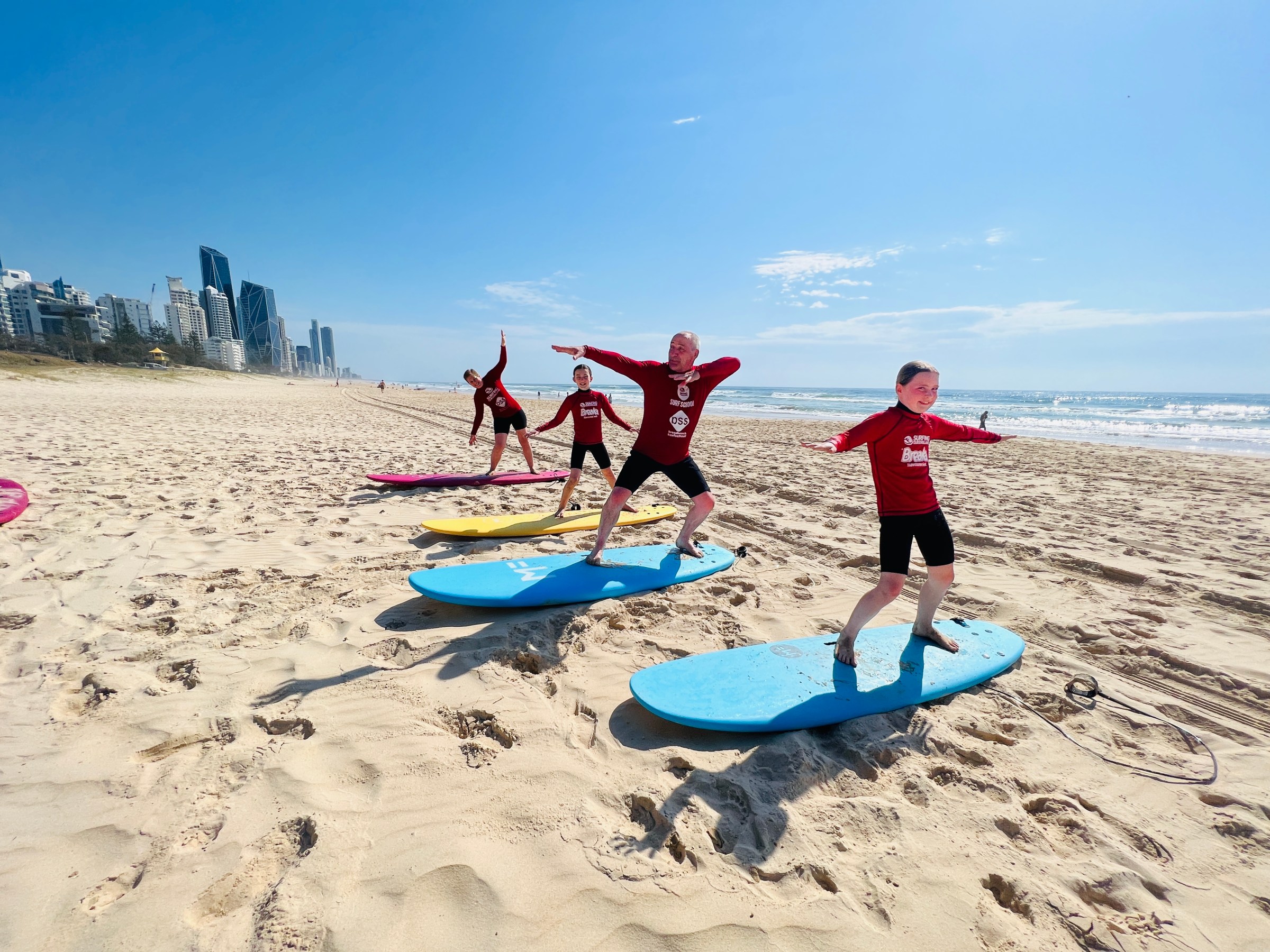 We are a MOBILE SURF SCHOOL currently parked opposite ‘1/5 Broadbeach Boulevard, Broadbeach’. This is where conditions are best within our permit area.